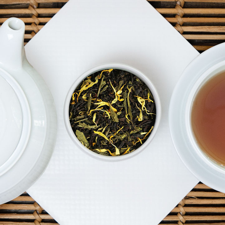 Mélange de thé vert et noir de Chine aromatisé à la châtaigne, à la prune et au raisin. Un automne des plus romantiques.