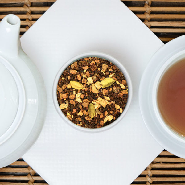 Merveilleux mélange de feuilles de thé noir d’Inde brisées et d’épices, clous de girofle, cardamome. À infuser dans de l’eau ou du lait. Un véritable voyage gustatif.
